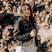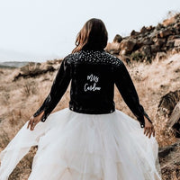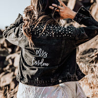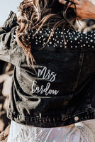 Black Embroidered Pearl Studded Jean Jacket for Bride