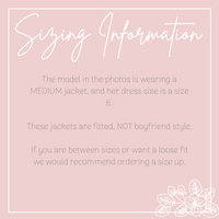 We cannot say enough GREAT things about our jean jackets!!! We LOVE THEM! We have been purchasing the jackets as gifts for a few months and most recently decided to purchase a couple of jackets for ourselves. They are perfect!!! We also cannot say enough great things about Something New Bridal! The customer service is EXCEPTIONAL and the quality of every single jacket we have ordered has been incredible! Such an amazing company to work with!