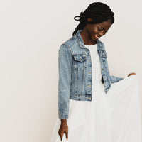 I’ve always struggled with finding good fitting Jean jackets and I followed the size guide and this fits perfectly! I am in love with my jacket and can’t wait to wear it on my honeymoon!!